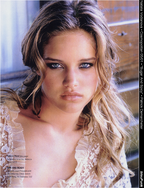 This unofficial website dedicated to blue-eyed Natalia Vodianova, has the largest collection of images, and here is her in Cosmopolitan. Natalia was the star of a Cosmo fashion article, 'Sugar and Spicy'.