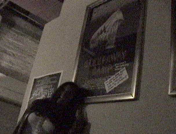 Felissa stands infront of a cult classic in the lobby of the ALAMO DRAFTHOUSE.