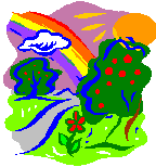 with as the rain stopped and the rainbow faded and the sun set. The Moon already risen grew brighter in a