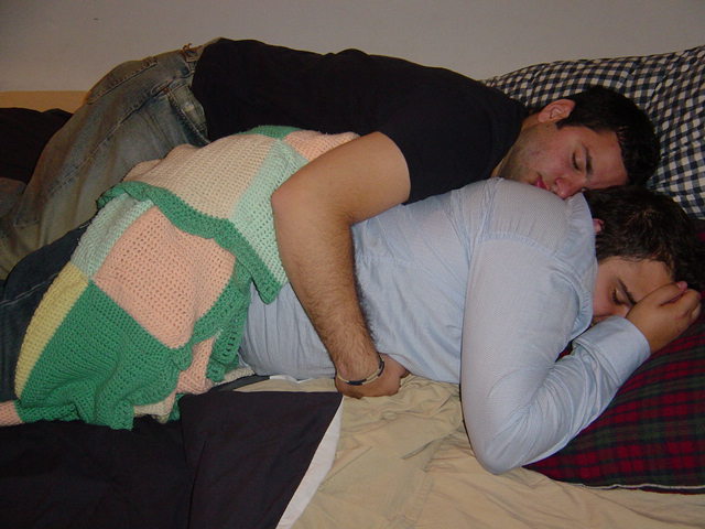 Guilleimo and Ricky cuddling.