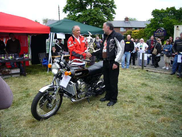 Here I am on the 21st Feb 2010 taking second place in the 'Vintage japanese Class' at The Bristol Bike Show'. A national well attended show that goes back many years and covered in the motorcycling press, another great day for myself and the RE5A but it was soooooo cold.