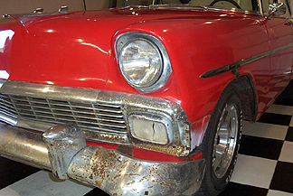 CHROME/STAINLESS...A nice thing about this car is that the stainless steel is all there, and it's in very good condtion, except for a couple of small dings. The grille and grille bars need replacing. Bezels, hood bird, door handles, and scripts all have some pitting.