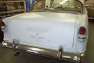 BODY...The body looks nice and straight, but if you took this car down to bare metal, you could be surprised. You'll see filler in the areas described above. In addition there is some filler on the quarter panels in front of the rear wheel wells. The driver's door and trunk lid will need some adjustment. The driver's door has some severe rust in the hinge jamb and on the bottom of the door. It is to the point of getting a new door. The passenger door has a 1 1/2" hole under the door. The trunk has a hole cut in the underside of the lid, near the left hinge. I do have another deck lid I will sell with the car if you want it. It's not perfect either, but there is no hole in it, like this deck lid has. PAINT...The car is in primer and it looks very good. This straight car would look good as an "Old School" driver "As Is"! The primer could be several years old.