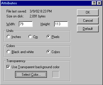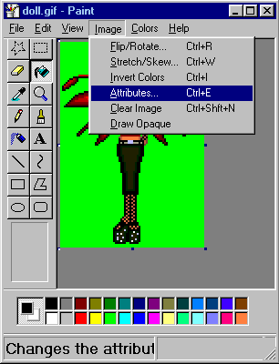 Select the color you used to fill in the background of the doll. I chose the Lime Green (100% green) because that is the color I used. Click "OK" when you're done. This will take you back to the Image Attributes screen. Click "OK" here as well.
