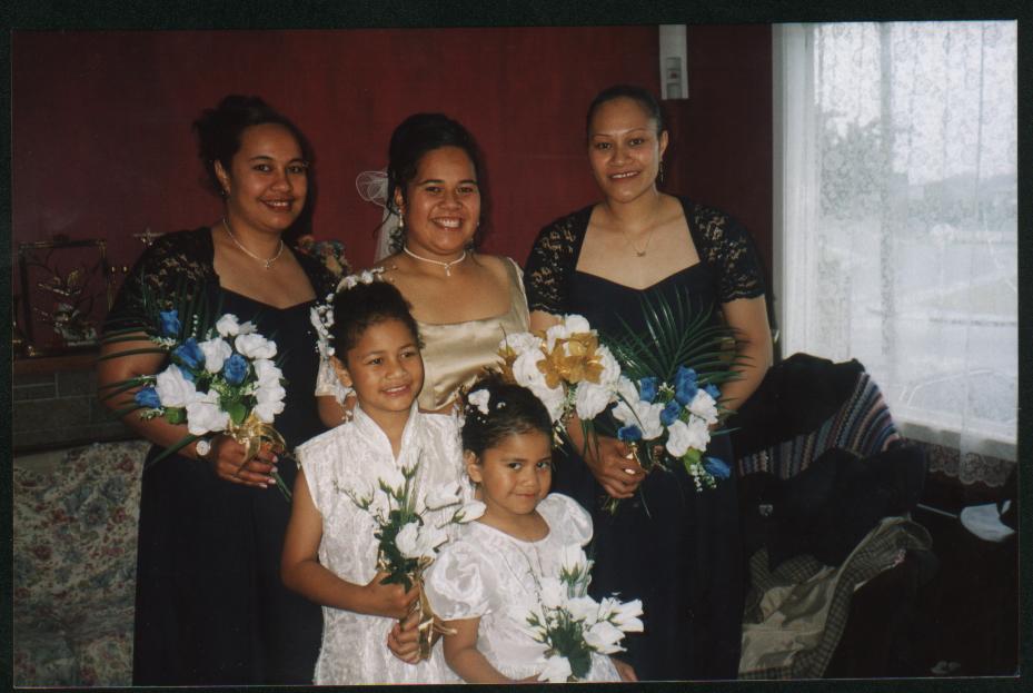 this is us getting prepped up before the wedding at Mavis' house