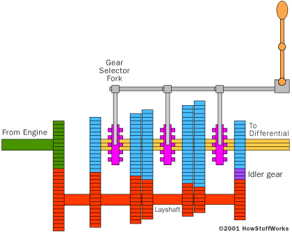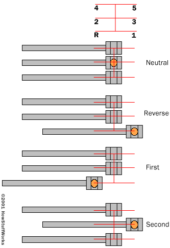 The five-speed manual transmission is fairly standard on cars today. It looks something like this internally: