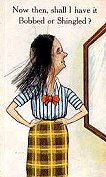 Before the 1920s, women NEVER cut their hair. A head of long, flowing hair was a woman's crowning glory. A woman with short hair was assumed to be either ill with a fever or a member of one of those radical "dress reform" cults. Ladies who bobbed their hair were taking a big step....they were getting their hair cut for the very first time. | hair | "What have I DONE?" This young lady looks a bit nervous! I would imagine that most women felt a sense of panic as they watched the first curls begin to fall. | ||