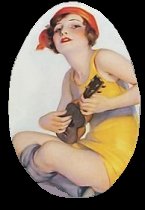 beachwear----- | that hussy ought to be ashamed of herself! Bathing suits also became modern in the 1920s. In the past, beach attire consisted of heavy wool suits with bloomers and stockings. In the 1920s, the new tank top bathing suits were made of stretchy, lightweight knits, which made them extremely form-fitting. They also revealed a good portion of the wearer's arms and legs. This was unheard of! At some point during the 1920s, almost every beach hosted its own version of the Bathing Suit Battles. Many women who wore the new styles were arrested for indecent exposure. | |||