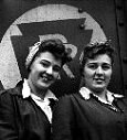private telegraph services Some industries required the services of a private telegraph line to transmit special items directly to the office. Radio stations and newspapers were hooked up to various news services, and photos were transmitted via the Associated Press Wire-Photo Network. Banks transmitted signatures with the teleautograph, police stations received photos of fugitive criminals, and brokerage firms received stock quotes with the stock ticker. salaries In the 1940s, the average blue-collar worker earned $53 per week. The war years were very prosperous for workers and large-scale farmers. Factories and defense plants were operating three shifts, which created 17 million new jobs and raised America's level of employment to 100 percent. The average work week increased from 38 to 47 hours, giving everyone a fat paycheck. The income of the average worker increased 300 percent, while the cash income of the average large-scale farmer increased by 400 percent. ![]() white-collar girls The American white-collar office girl was young, single and pretty. She took the subway to her downtown office, ate lunch at the corner drugstore, and was impeccably dressed in a suit, hat and gloves. She took dictation, typed like a whirlwind and knew the office filing system like the back of her hand. ![]() blue-collar girls During the war, women took the jobs that were left vacant when the men enlisted. Wartime ladies worked in factories, warehouses, repair shops and service stations. Farm wives fired up their tractors and kept the fields planted and plowed. While the mailman was completing his tour of duty, his wife was completing his postal delivery route. These ladies wore one-piece coveralls and kept their hair clean and out of the way under stylish scarves called do-rags.