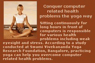 Cramps in the thumb may be relieved by performing this simple exercise. It is very important to follow the exact position of the hands and legs. The weight of the arms alone, provides sufficient pressure. No movement is necessary after final positon has been achieved. One minute is enough to feel instant relief for your poor, tired hands. On a more serious note: those who work many hours at the computer, will invariably suffer from various ailments, unless precaution is exercized. Please click on the following link, which provides useful information on various 'computer-related' work injuries: |