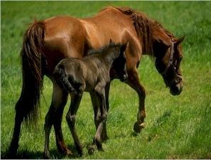 The horses hooves are extremely complex structures, very sensitive to stress and pressure and with an excellent blood and nerve supply. On the outside and underneath, they are protected by horn (a form of modified, hardened skin) which grows down from the coronet band, a fleshy ridge around the top of the hoof, equivalent to the cuticle on human nails. Inside the hoof, the horny outer structures are tightly bonded to the sensitive ones by means of leaves of horn and flesh (called laminae) which interlock around the wall of the hoof. The sensitive structures themselves surround the bones of the foot. When weight is put on the foot it flattens and expands slightly, squashing the sensitive tissues and their blood vessles between the horn outside and the bones inside. The blood is squeezed up the leg into the veins, which have valves stopping the blood running back again. When the weight is removed, fresh blood rushes back into the tiny vessels (called capillaries) and so the process goes on.