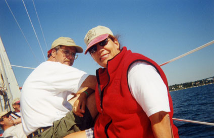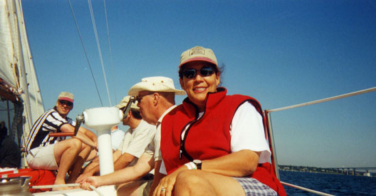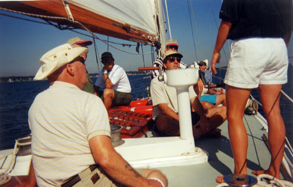 Gary Jobson (ESPN) flew up for the days events and drew Northern Light to skipper for the day. That's Gary with his arm around Debi. "Hey, watch it there Gary!" Gary is the national spokesperson for the Leukemia Cup Regattas and tries to make an appearance at as many of the Regattas as his schedule allows. Debi first met Gary at last year's Fantasy Sail Weekend, and thinks the world of him. He's really a down to earth guy that puts on no airs.