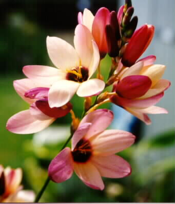 Flowers : three to eleven, white or cream-colored, the outer lobes sometimes pale- mauve, pale or deep pink on the outside. The perianth tubes long and narrow.