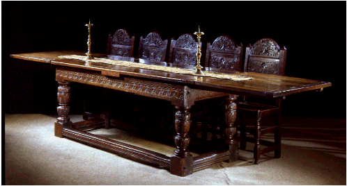 As you enter the room you notice a quite old and ornate wood table with five chairs behind it. Placed between the first and second chair and also the fourth and fifth chair are two gold candle holders. They rest ontop of an old lace table drapery. The chairs behind the table you also note are quite beautifully carved and very old as is the table.You have entered the Council Chamber. Here in this chamber The Council of Elder use to hold court. Many monumental decisions were made in this chamber. However as you continue to take in the chamber you can tell it has been some time since it was used. You slowly make your way towards the table to get a closer look at it. As you near the table you catch out the corner of your eye movement from the far corner. You turn to get a better look and you see a ghost like figure fading in and out of the darkness.