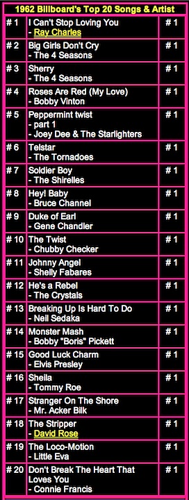 BillBoard Top 20 for 1962