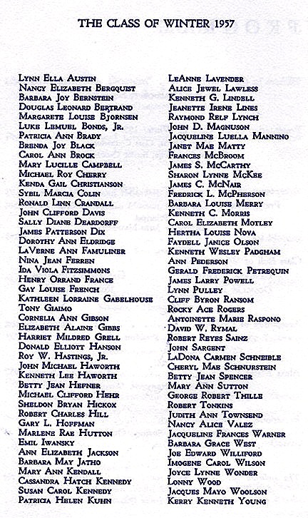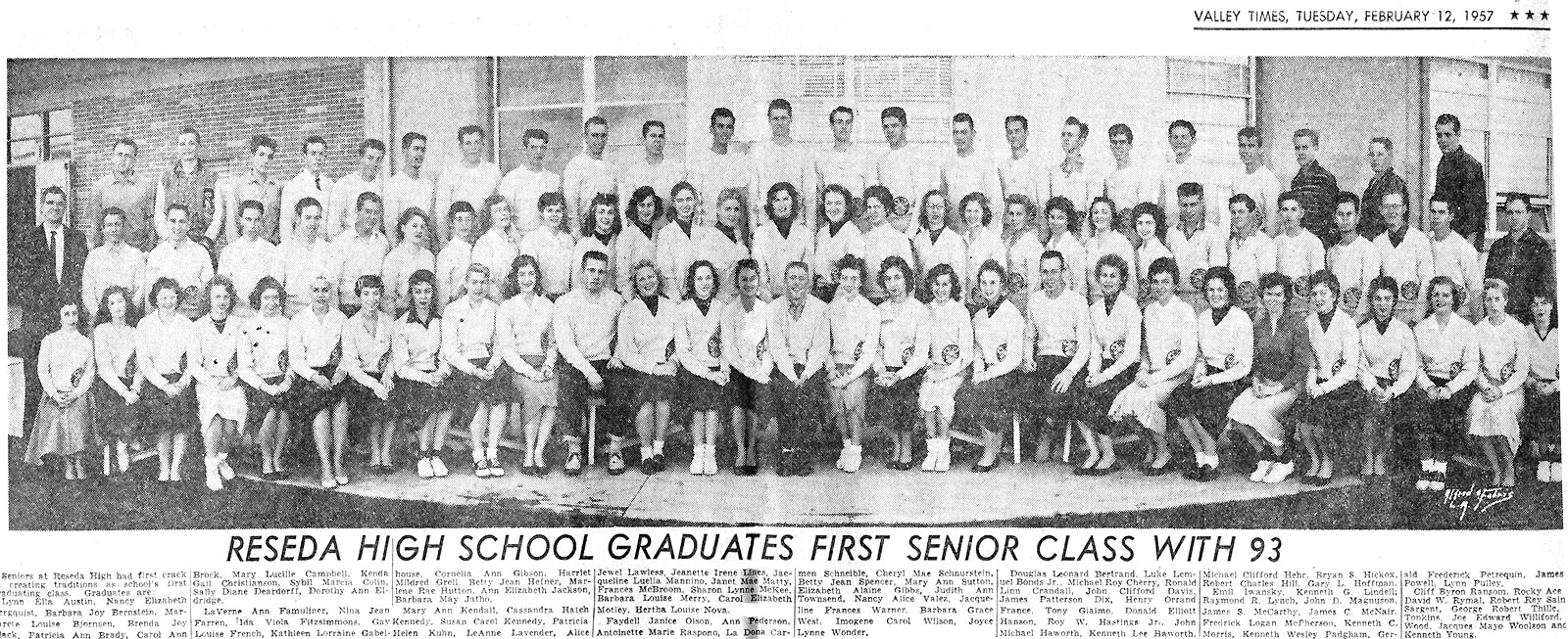 This was the FIRST CLASS to graduate from Reseda High School. Winter, 1957. Although small in size, many went on to achieve greatness and made us all proud.