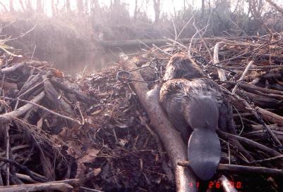 Click Here To Go Back to The Home Page Beaver-- Here's a Beaver in a #330 Conibear at downstream side of crossover. [Hot set! I have taken 8 in this spot]. next