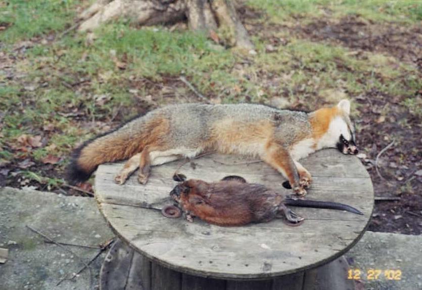 Joe Hawkins - A days catch of grey fox and a muskrat.
