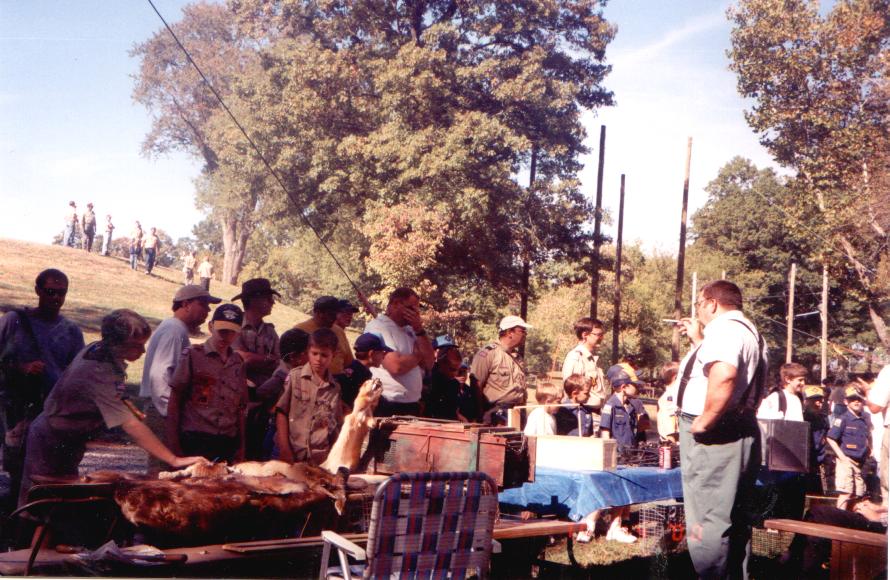Having learned from last year, we were better organized this time, by roping off a section in which the boys could all stand and look on at the demos. There were 3 'sections'. One for Chris, one for Jackie, and one for Bob. Many Thanks also to Richard Sudderth and Lane Smith for their help earlier in the day. My appoligies for not having photos of these guys. Here you will see Chris talking to the boys as they are looking on. |