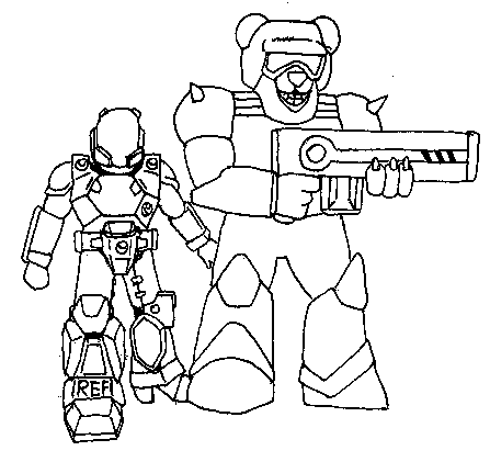 The original translation for this weapon was just BG (Big Gun). However the designer was a vulgar man, amazed by the explicity of human vulgarity and changed the name to BFG (which we all know stands for Big F(_)$&ing Gun). This weapon is a powerful particle accelerator weapon. However the weapon is bulky and unwieldly even in the hands of a Cyclone. Any non-Carbonarite wielding the weapon is a -3 to strike at all times. Of course it can be mounted on a large vehicle or large tripod w/ no strike penelty. (This is the gun shown held by the Carbonarite on the cover)
