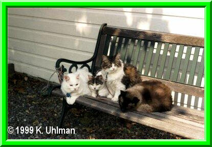 The gang enjoys a sunny summer afternoon in my back yard on the bench together!