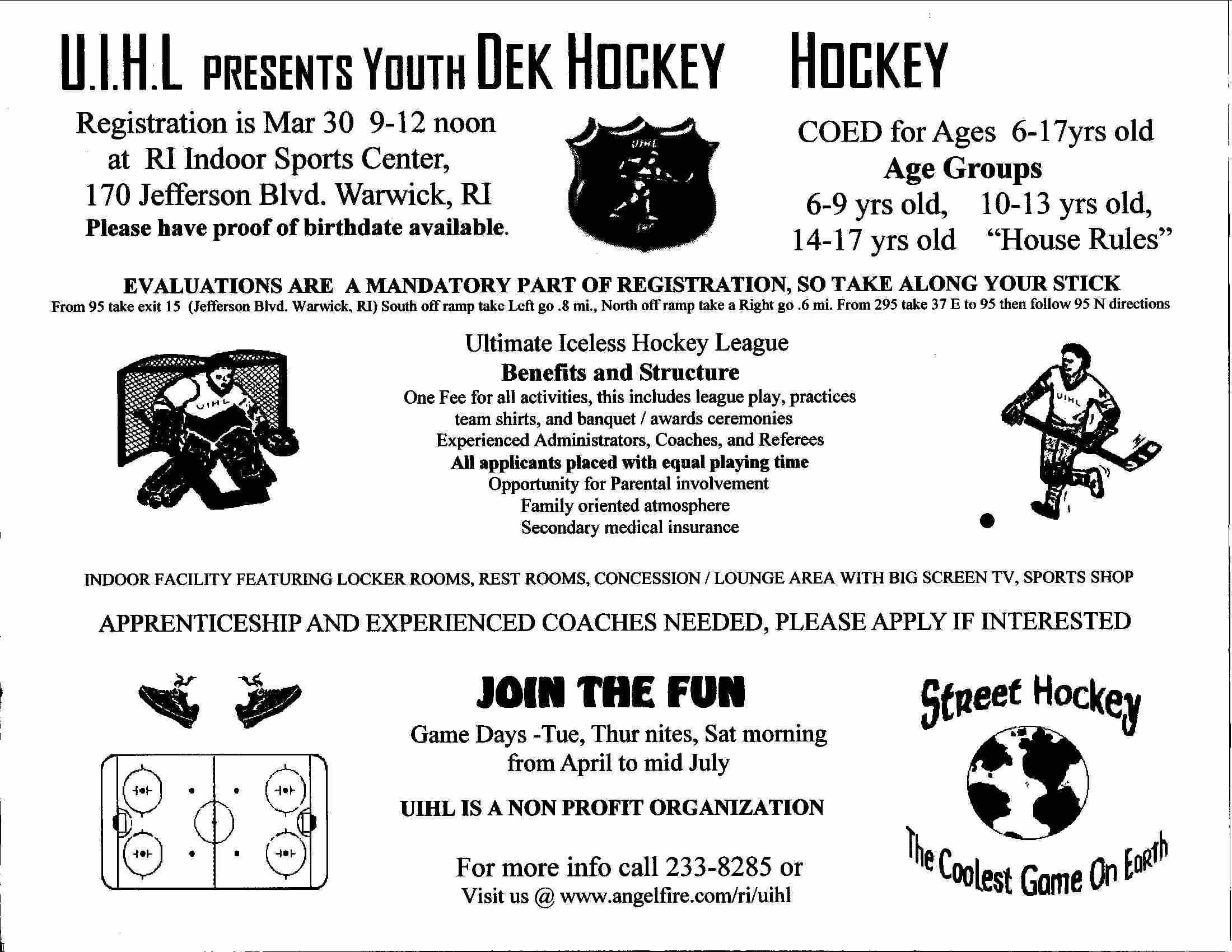 Anyone needing banquet tickets can mail a check ($15.00 for each guest - free for players) made out to UIHL. Mail to PO Box 19083 Johnston, RI.