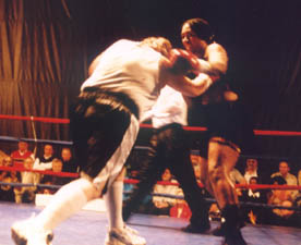 A Jackie Frazier-Lyde takes control in the three round against Annie Brooks of Hickory, N.C and after that with a three standing eight count, she was blooded and the referee could a halt to the bout!