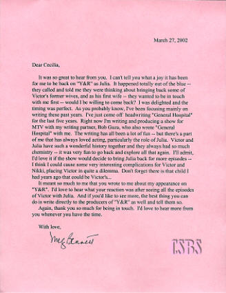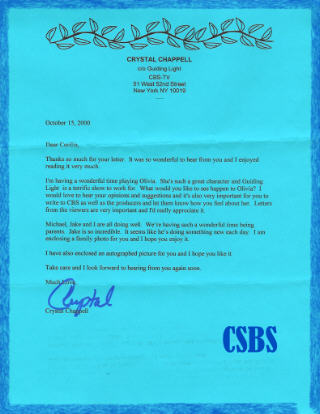 Chrystal Chappell spelar Olivia Spencer I Guiding light (gick under namnet Intrig på tv3 för ca 10 år sen):