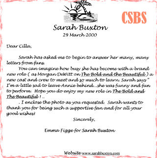 Sarah Buxton (Annie Douglas Richards I Sunset beach och Morgan DeWitt I Glamour):