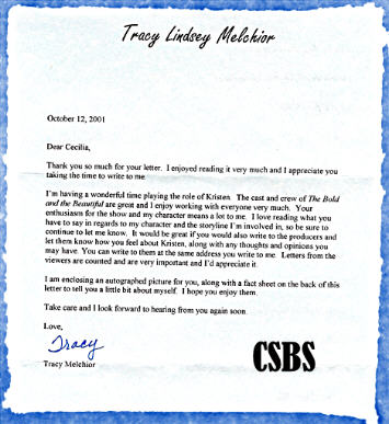 Tracy Lindsey Melchior (Tess Marin I Sunset Beach och Kristen Forrester I Glamour):