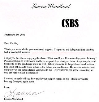 Lauren Woodland spelade rollen som Sara Cummings I Sunset beach I några avsnitt innan hon ersattes av Shawn Batten. Numera spelar hon Brittany Hodges i Makt & Begär (The young and the restless):