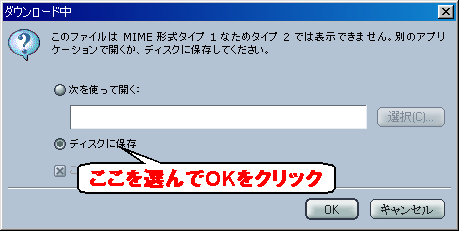 2.「このプログラムをディスクに保存する」を選んで、「OK」をクリックします。