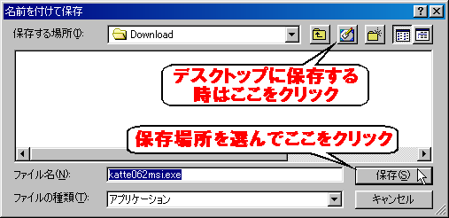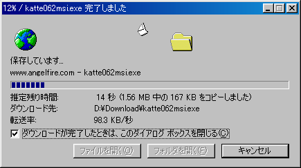 次の図はNetscape 6の時(katte062.exeをダウンロード中)。