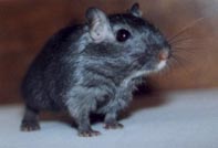 Bianca is a slate colored gerbil with white strip on her chest and little white paws. She just became a wonderful mother on May 2, 2002 to six little pups!