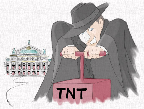 "If they thought Le Tour Eiffel was something..." Erik makes his presence known on New Year's Eve in this illustration that debuted during the final days of 2000. |