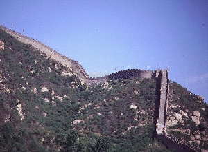 The Great Wall is one of the largest building construction projects ever completed. It stretches across the mountains of northern China, winding north and northwest of Beijing. It is constructed of masonry, rocks and packed-earth. It was over 5,000 km (=10,000 Li) long. Its thickness ranged from about 4.5 to 9 meters (15 to 30 feet) and was up to 7.5 meters (25 feet) tall.