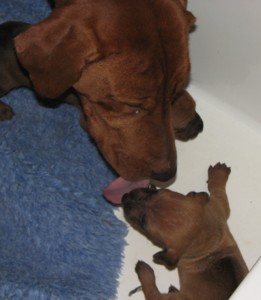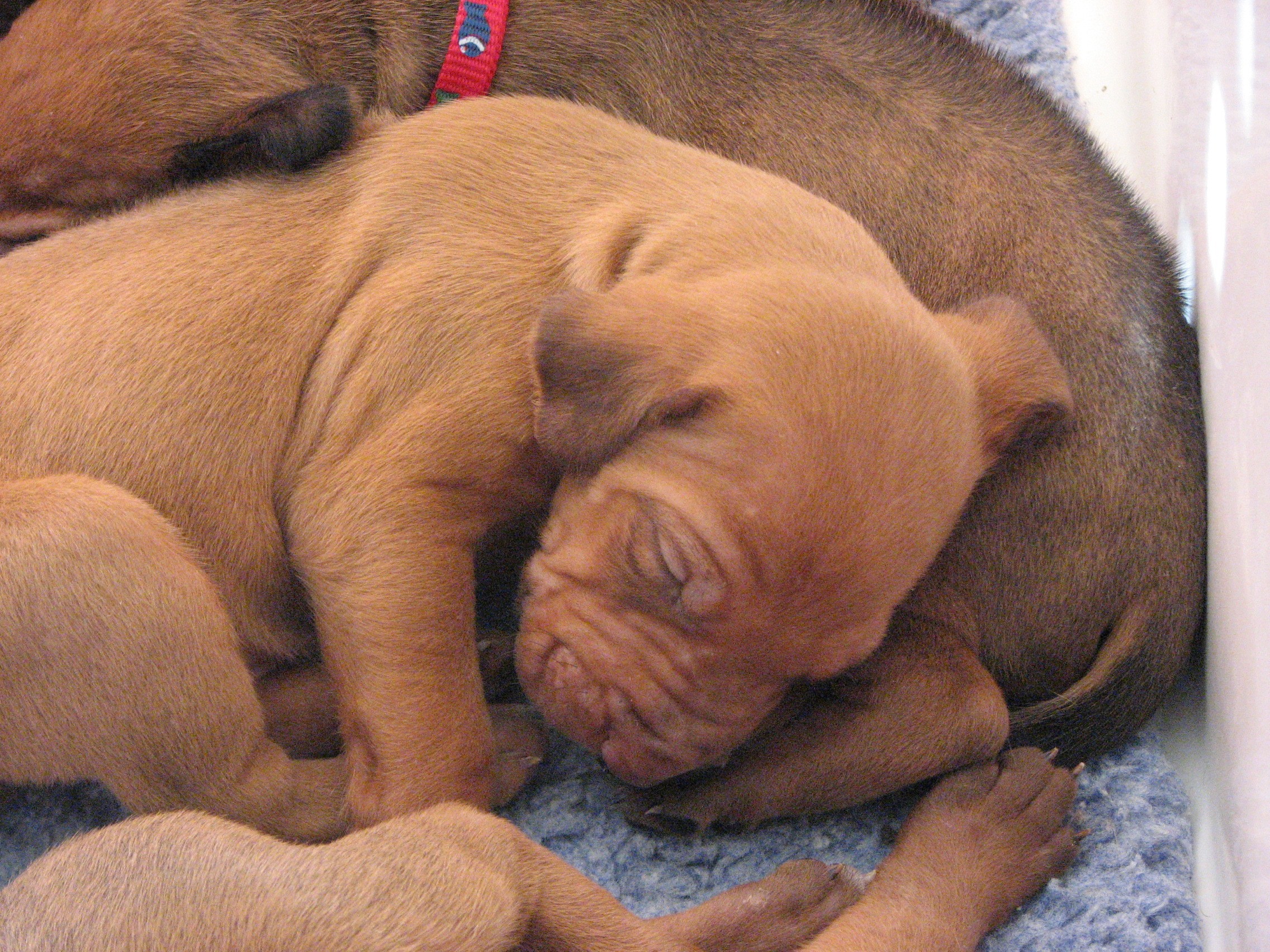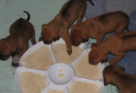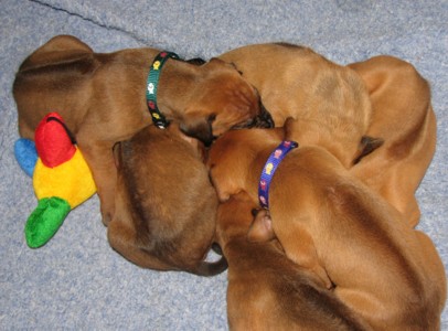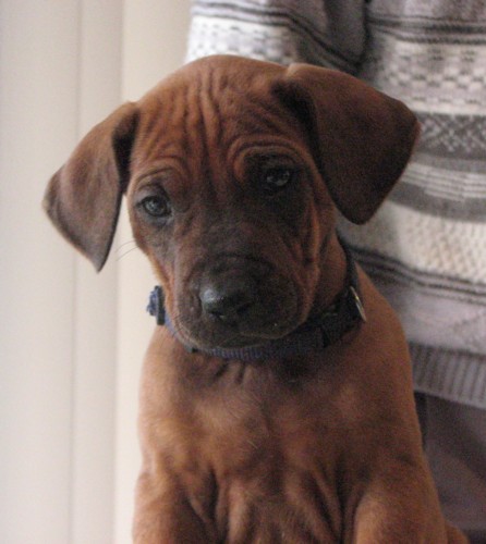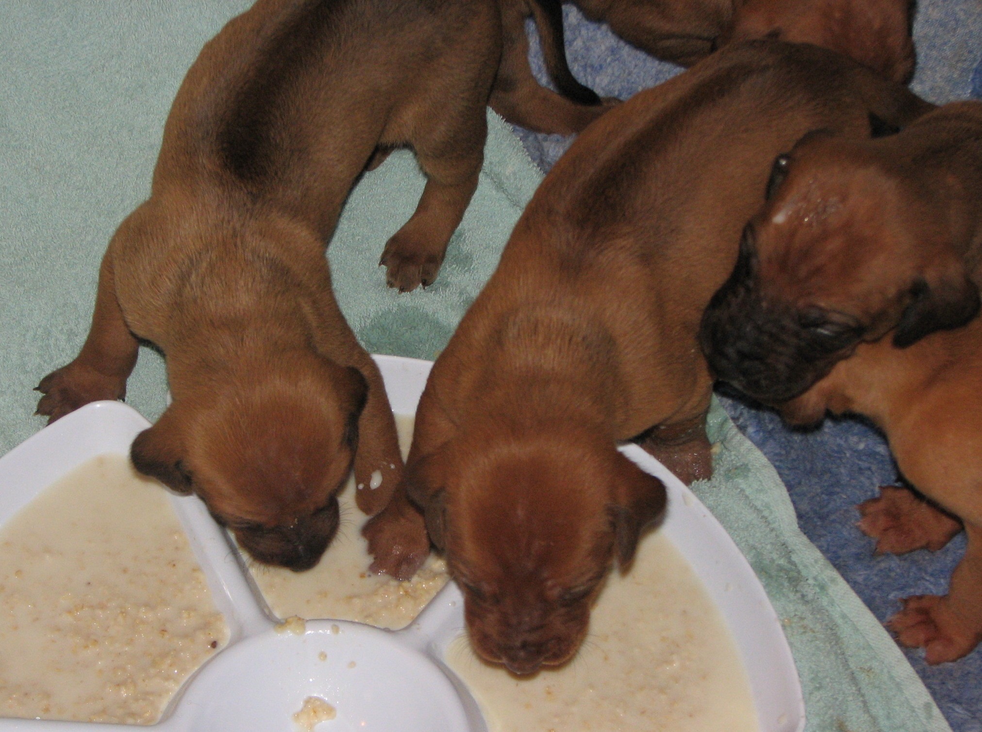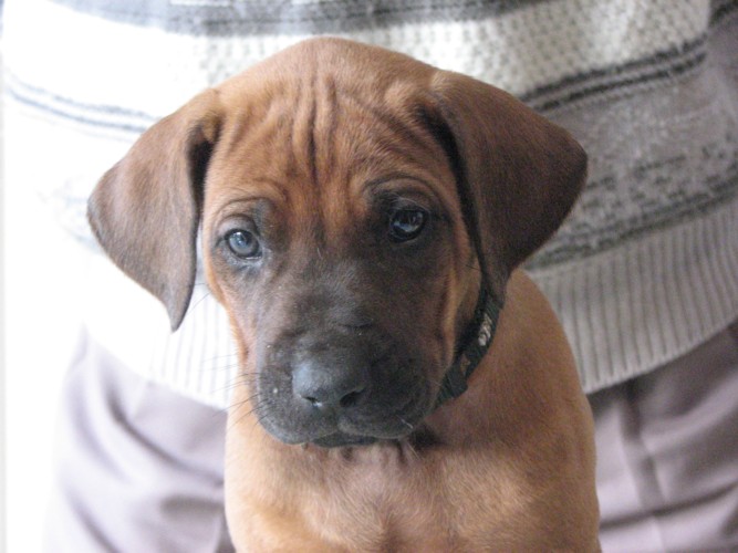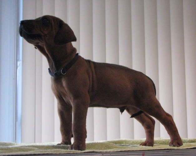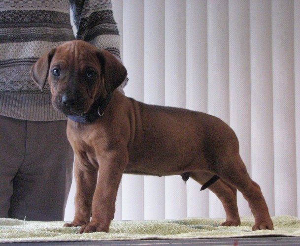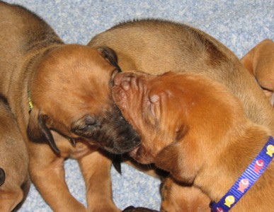 6 beautiful healthy puppies have arrived. 2 girls, 4 boys, 2 of them livers. At this stage they seem to be all show potential, with some excellent ridges, Nice healthy puppies and Amanzi is doing well. She is calm,