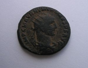 Probus AE antoninianus 276-282 AD 4.1g 23mm. Obverse: IMP C M AVR PROBVS P F AVG, radiate, draped and cuirassed bust right. Reverse: CLEMENTIA TEMP, Emperor standing right receiving Victory from Jupiter standing left holding scepter,H in between, XXI in ex.about VF.RIC 922--Ref#m147---$65--