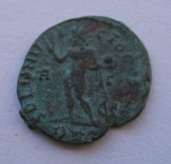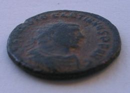Numerian AE 19mm 4.4g Antoninianus 283-284 AD. Obverse:IMP C M AVR NVMERIANVS P F AVG radiate draped and cuirassed bust right. Reverse: VIRTVS AV-GG Numerian standing right(something in front of his knee?) holding scepter and receiving Victory on globe from Mars standing to the left holding long scepter.Greek letter Epsilon in between, XXI in exergue. Antioch mint. VF RIC 466-Ref#m110---$60--