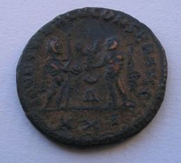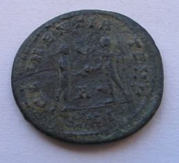 Maximianus AE22mm 3.9g Antoninianus. Heraclea, AD 292-295. Obverse: Radiate draped bust right IMP C M A MAXIMIANVS AVG. Reverse: CONCORDIA MILITVM Jupiter presents Victory on a globe to Maximianus, Δ in between, XXI� in exergue. VF.RIC 595,D. Ref#m101---$45--