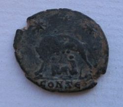 Constantine the Great Commemorating the founding of Rome AE3 (19mm) 2.2g 306-337 AD. Reverse: She wolf suckling Remus and Romulus with two stars above. Mintmark: CONS/ε. VF.Ref# m66---$40--