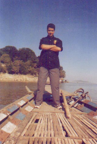 Daniel Isaac poses for a picture while on a boat on the river brahmaputra in Guwahati