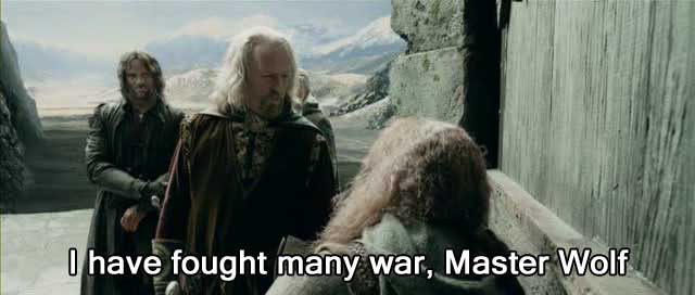 Théoden: I have fought many wars, Master Dwarf. I suggest the casino or the TAB.