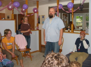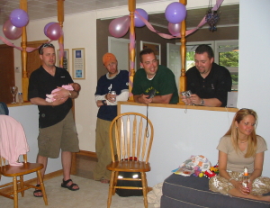 On Friday June 11th our house was full of friends to welcome Kylyn Shindle to the gang. The BBQ was planned as an outdoor event but due to the possibility of rain and the abundance of mosquitos we moved it indoors. There was tonnes of food as usual and more kids than I have ever had here before. Pilks' fried fish and chips in a big outdoor deep fryer and Krista Curry BBQ'd. Thanks to everyone who came and brought food and presents. Below are some pictures of the evening.
