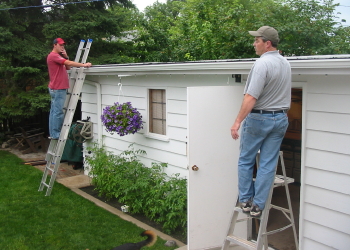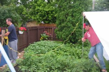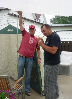 Ryan and Pilks tie down the tarp / The Construction Crew