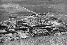 An aerial view of the of Persepolis palace complex shows the relationship of the various palaces, apadanas, and other parts of the complex to each other. The columns and a most impressive set of stairways are the only major parts that remain of Darius's Apadana.