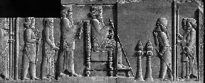 This is one of the most important friezes in Persepolis. At the center of the frieze, Darius the Great sits on the throne; Xerxes, Viceroy of Babylon and Crown Prince, stands behind him. Both figures are on a higher platform than the floor. An official appears before the king. Two incense burners separate the King and the official.