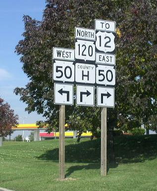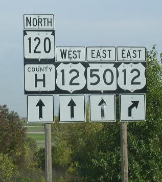 South end of WI St Rt 120 at the Wisconsin/Illinois State Line. Sign at the Wisconsin/Illinois State Line. Looking north at WI St Rt 120 at the Wisconsin/Illinois State Line. A junction marker on EB WI St Rt 50. A junction marker on NB U.S. Rt. 12. A BGS on SB U.S. Rt. 12. BGS on NB U.S. Rt. 12 at Lake Geneva. NB WI St Rt 120 north of Spring Prairie. A BGS on SB I-43. North end of WI St Rt 120 at I-43.