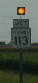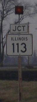 The end of IL St Rt 113 at IL St Rt 47 The western end of IL St Rt 113. IL St Rt 113 just east of IL St Rt 47. EB IL St Rt 113 west of the Mazon River. EB IL St Rt 113 at the Mazon River, 4 miles west of Coal City EB IL St Rt 113 at Broadway Street in Coal City Looking west down IL St Rt 113 as a Burlington Northern-Santa Fe Frieght Train passes through Coal City. EB IL St Rt 113 near Tinman Street. EB IL St Rt 113 near School Street. A old street sign at the Will/Grundy County Line in Diamond. EB IL St Rt 113 at the Grundy/Will County Line.