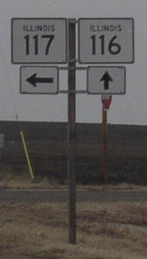 IL St Rt 117 is multi-plexed in Woodford County. Illinois State Route 116, from 4 miles west of Roanoke to near Benson.